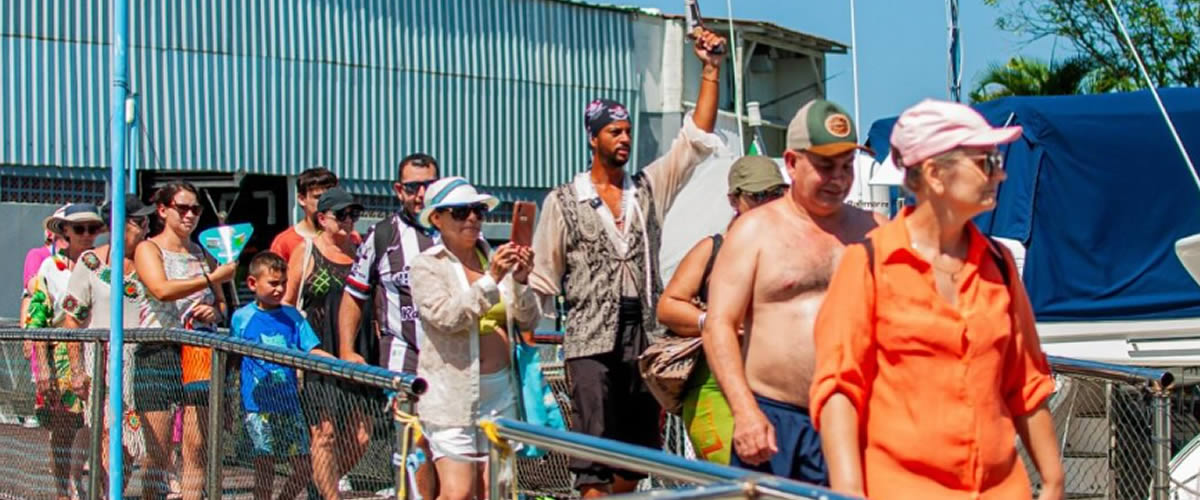 Oferecemos passeios marítimos temáticos com barco pirata, tripulação caracterizada e show.